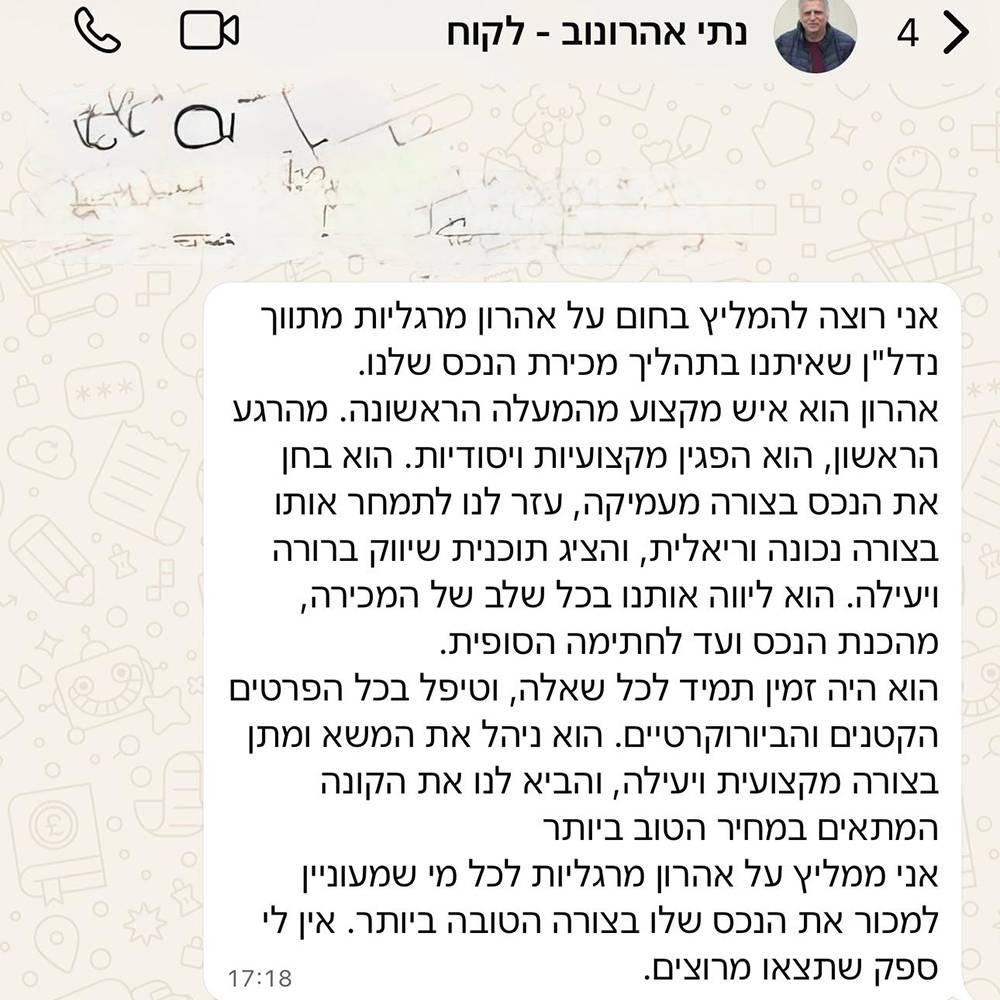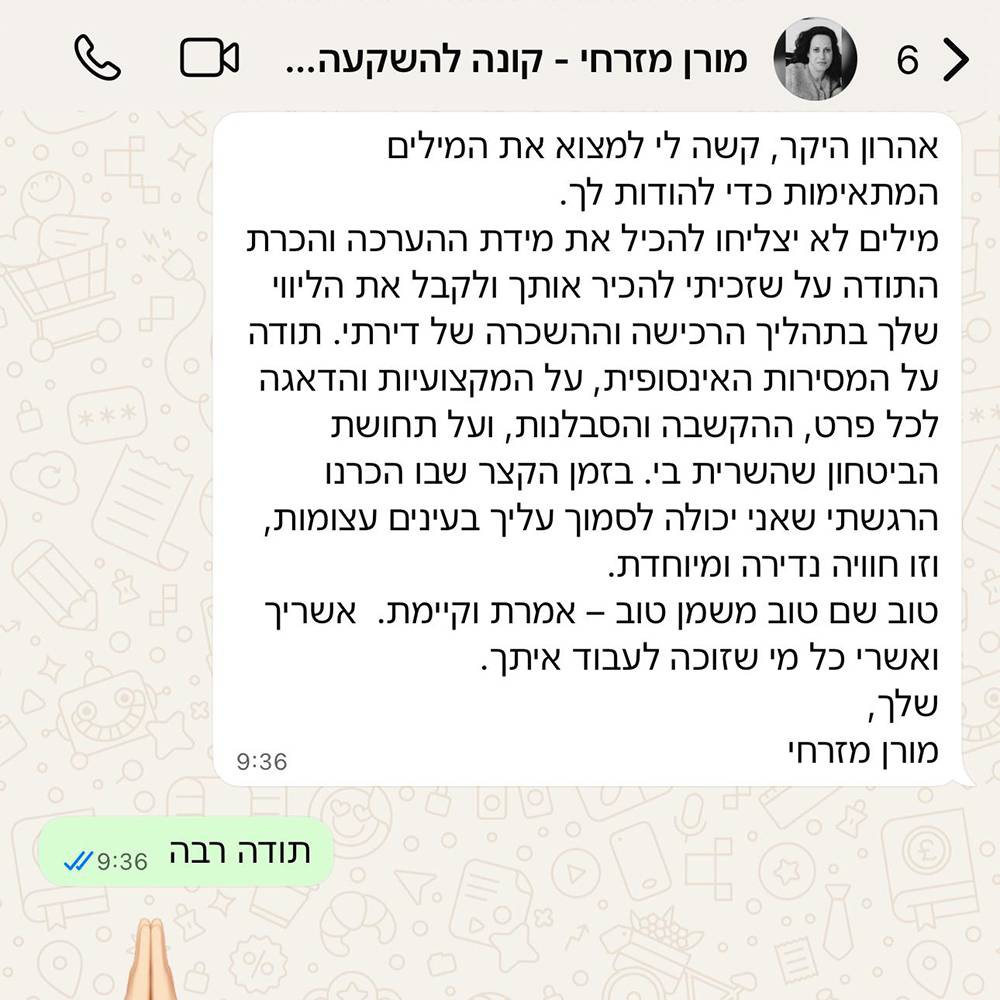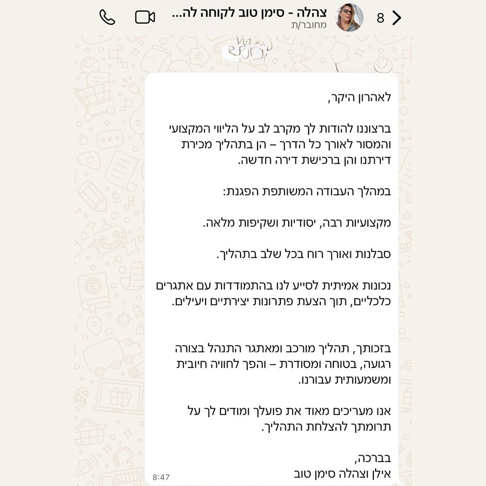 החזון שלי: להפוך את עולם הנדלן לנגיש, ברור ואישי. אצלי תמצאו עסקאות איכותיות, ליווי צמוד, והסברים בגובה העיניים – כי הדרך לבית הבא שלכם צריכה להיות בטוחה וברורה.